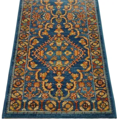 Alfombra de pasillo de medida estandard calidad Native 200 en tonos azules.