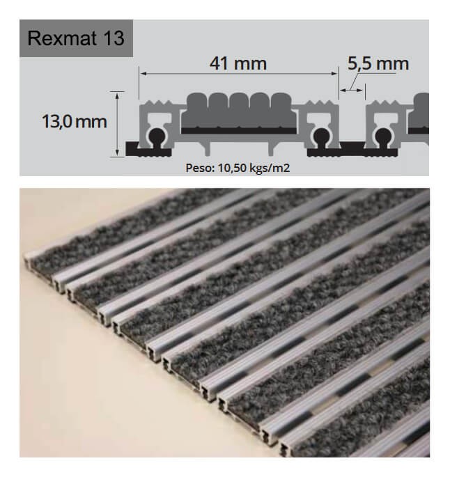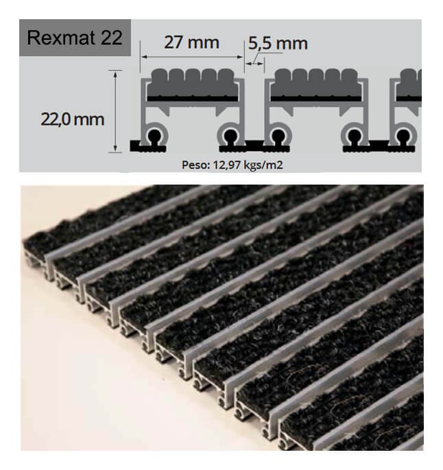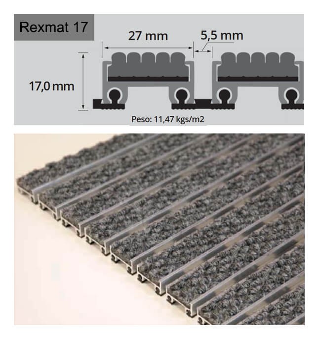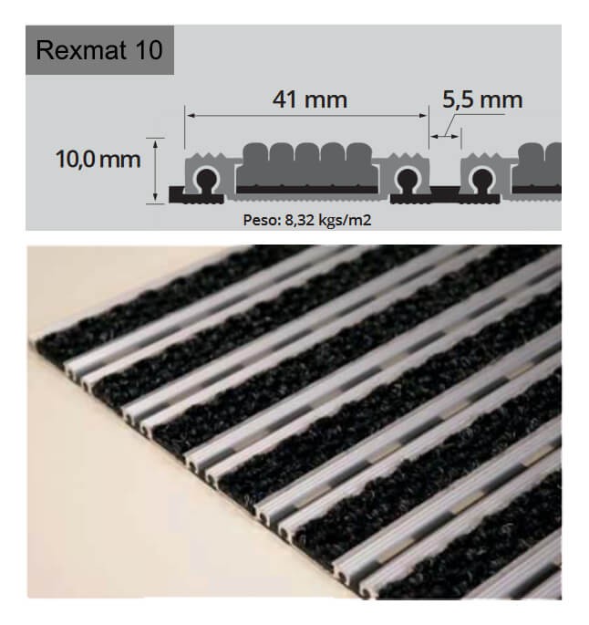 Es un felpudo metálico abierto el cual permite la limpieza del foso. Es además de fácil enrolle.